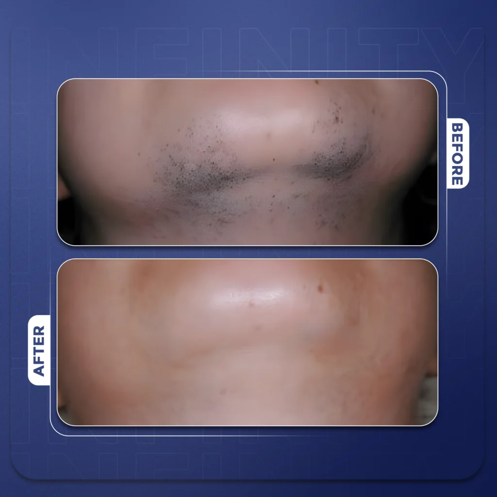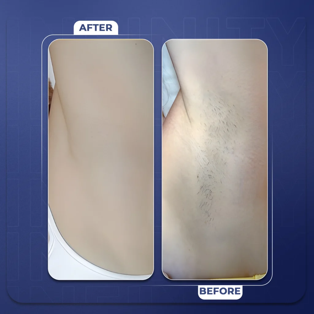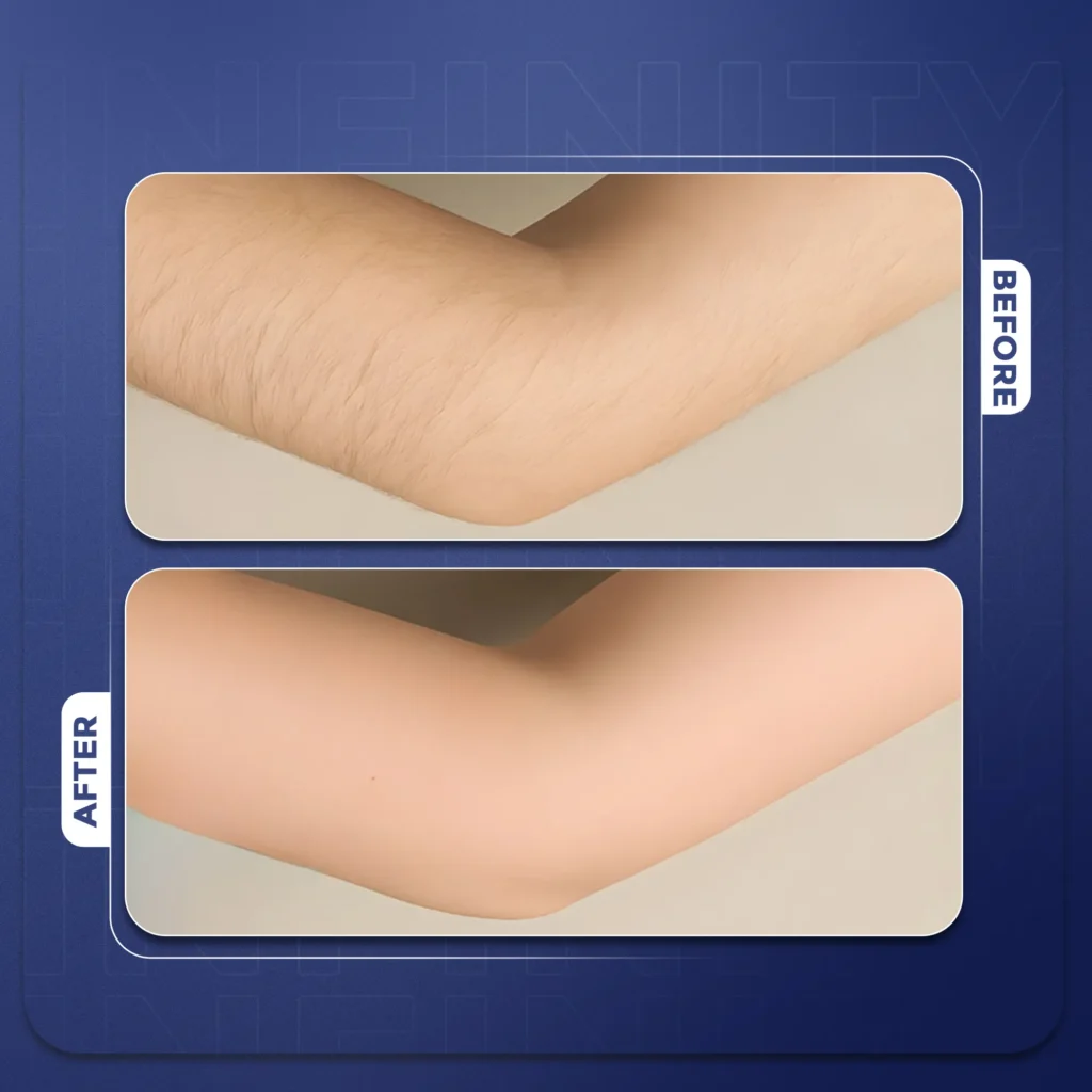 نتائج حقيقية تظهر تحسنًا واضحًا في نعومة البشرة وتقليل الشعر بشكل تدريجي مع مرور الوقت. يُرجى ملاحظة أن النتائج قد تختلف من شخص لآخر، حيث تؤثر أنواع البشرة المختلفة، ولون الشعر، والمنطقة المعالجة على سرعة ودرجة تقليل الشعر.