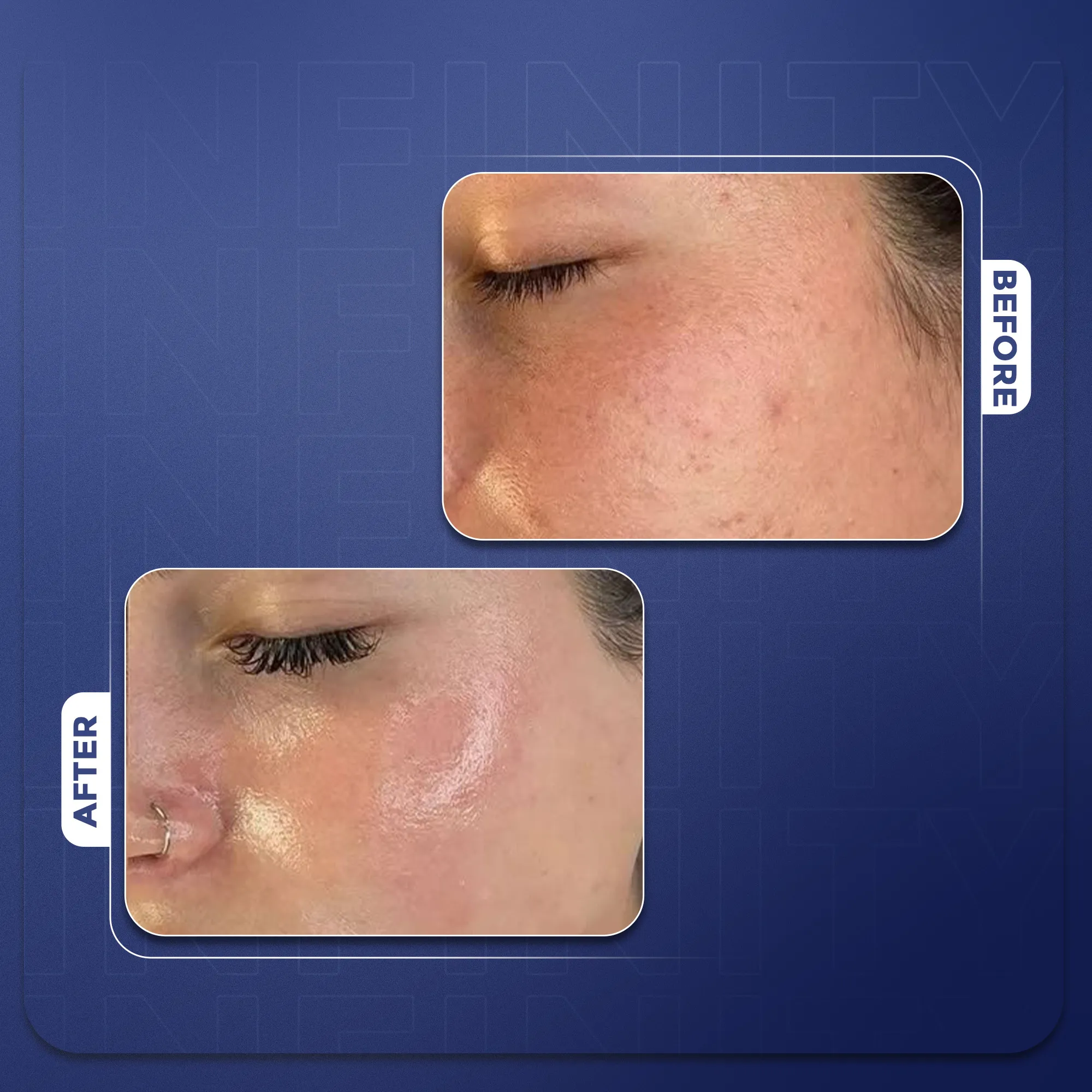 في مركز إنفينيتي للتجميل وطب الأسنان، نقدم أحدث العلاجات لتجديد بشرتكِ وتعزيز جمالكِ. يستخدم علاج ديرمابن تقنية الوخز بالإبر الدقيقة لتحفيز إنتاج الكولاجين، مما يقلل من الخطوط الدقيقة والتجاعيد والندبات لبشرة أكثر نعومة وشباباً.